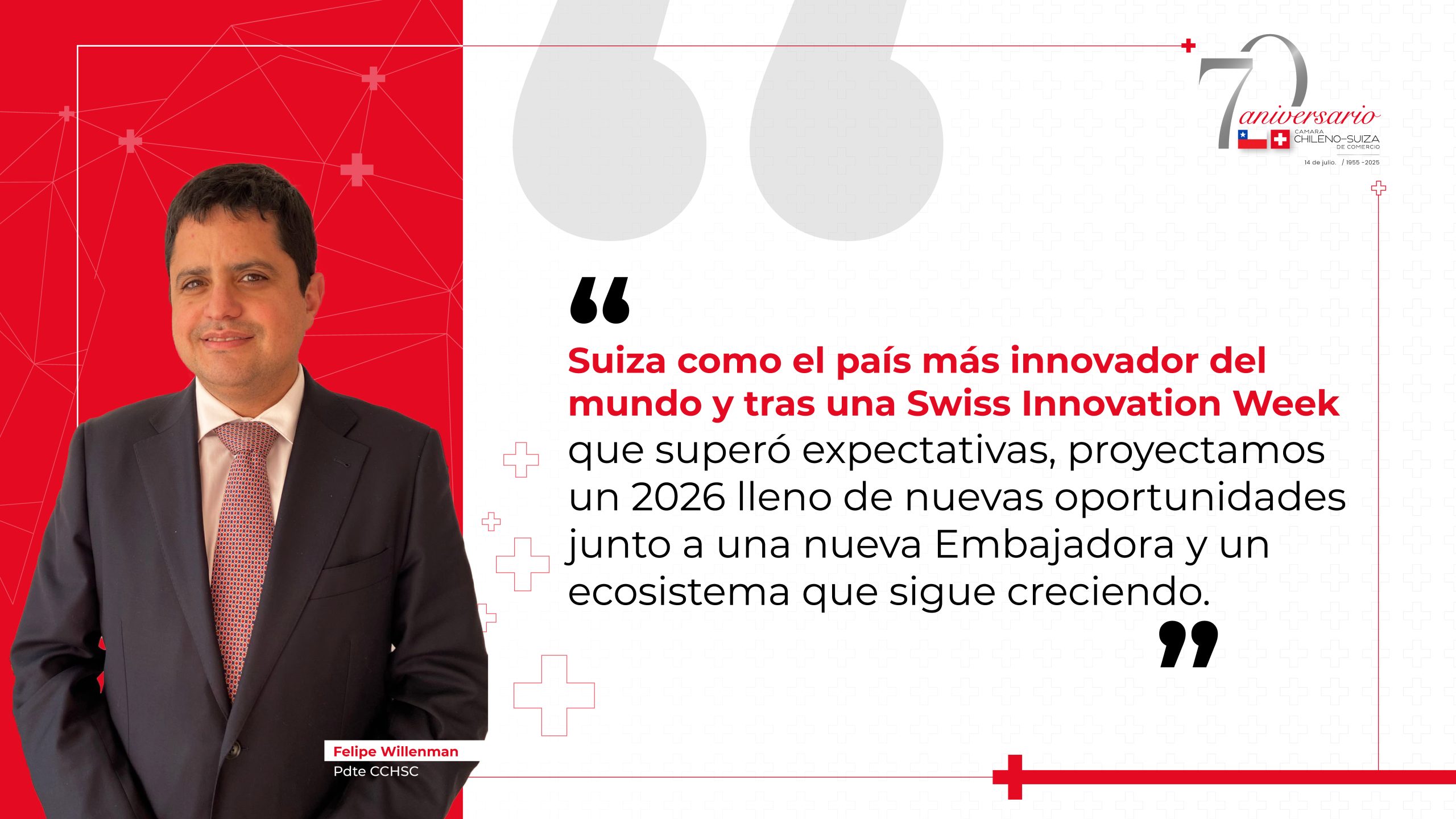 Este hito abre una agenda de largo plazo que busca consolidar la innovación suiza como un referente anual de diálogo e inspiración, y junto a los Swiss Sustainability Awards —que reconocerán en enero las mejores prácticas en sostenibilidad— seguimos creando espacios que reflejen nuestra misión: promover la innovación con propósito y proyectar el sello suizo.
